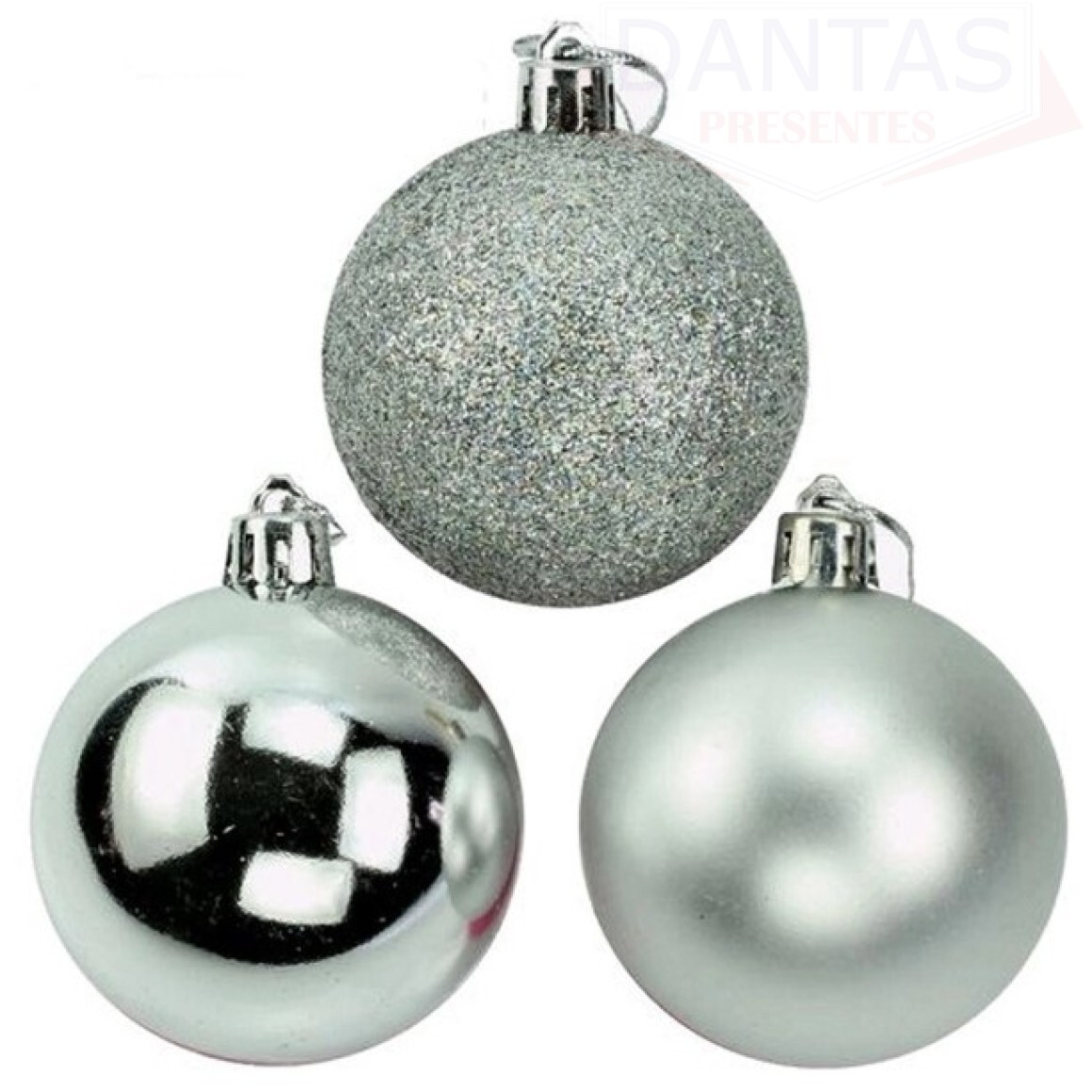 2. Bola Mista Fosca Lisa Glitter 6cm Prata com 9 Peças - Rio Master