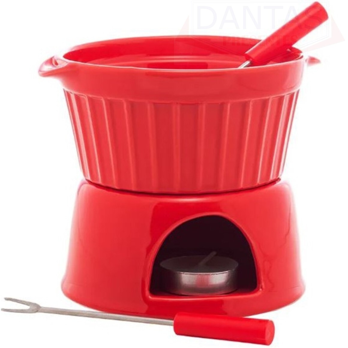 Contém: 01 Recipiente, 02Garfos, 01 Suporte e 01 Vela