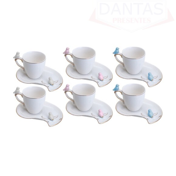 Conjunto 06 xícars Porcelana Cute Birds Design Plate Colorido
