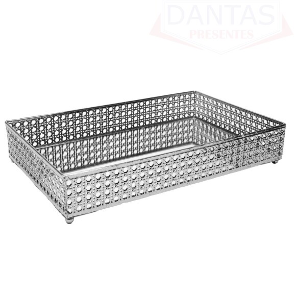 BANDEJA COM ESPELHO VERSALHES 32CM X 20CM X 5CM PRATEADA METAL