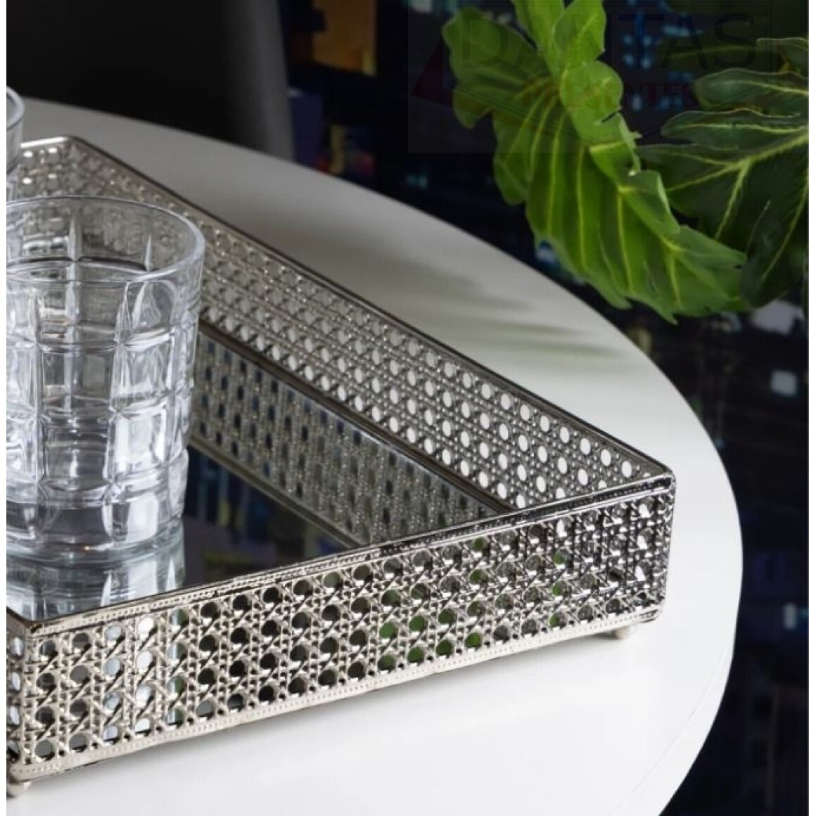 2. BANDEJA COM ESPELHO VERSALHES 32CM X 20CM X 5CM PRATEADA METAL